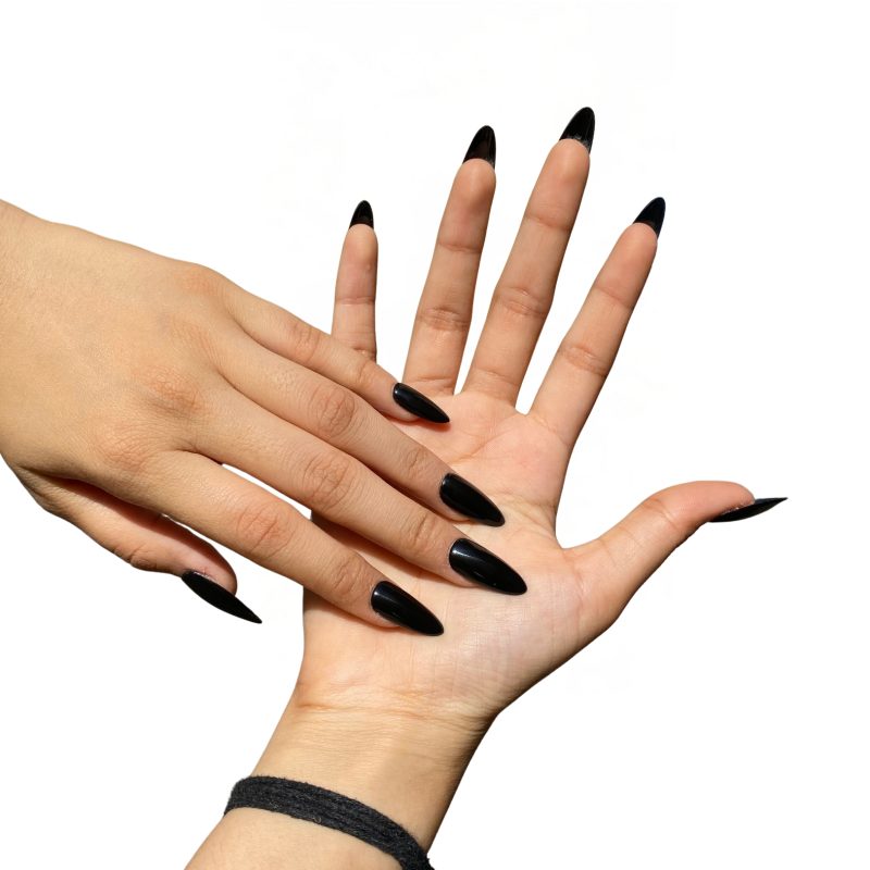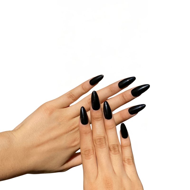 SKU: N/A Category: 24k Glam Tags: black nails, long almond nails, long black nails, plain black nails, plain nails, Rouge